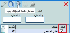 2. امکان غیر فعال کردن و عدم نمایش فرم های چاپی در پنجره طراحی و انتخاب فرم چاپی